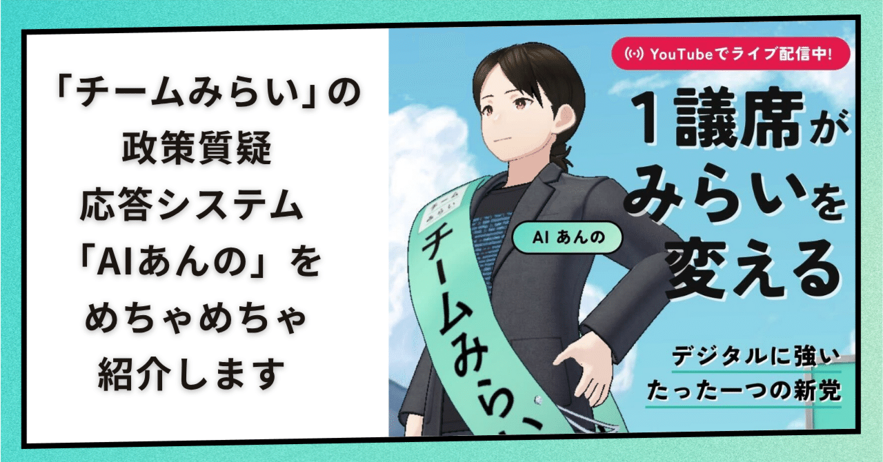 A: 安野氏の政策を学習した対話型AIで、有権者の質問にリアルタイムで答えるツールです。選挙期間中に6,200件以上の質問に対応しました。